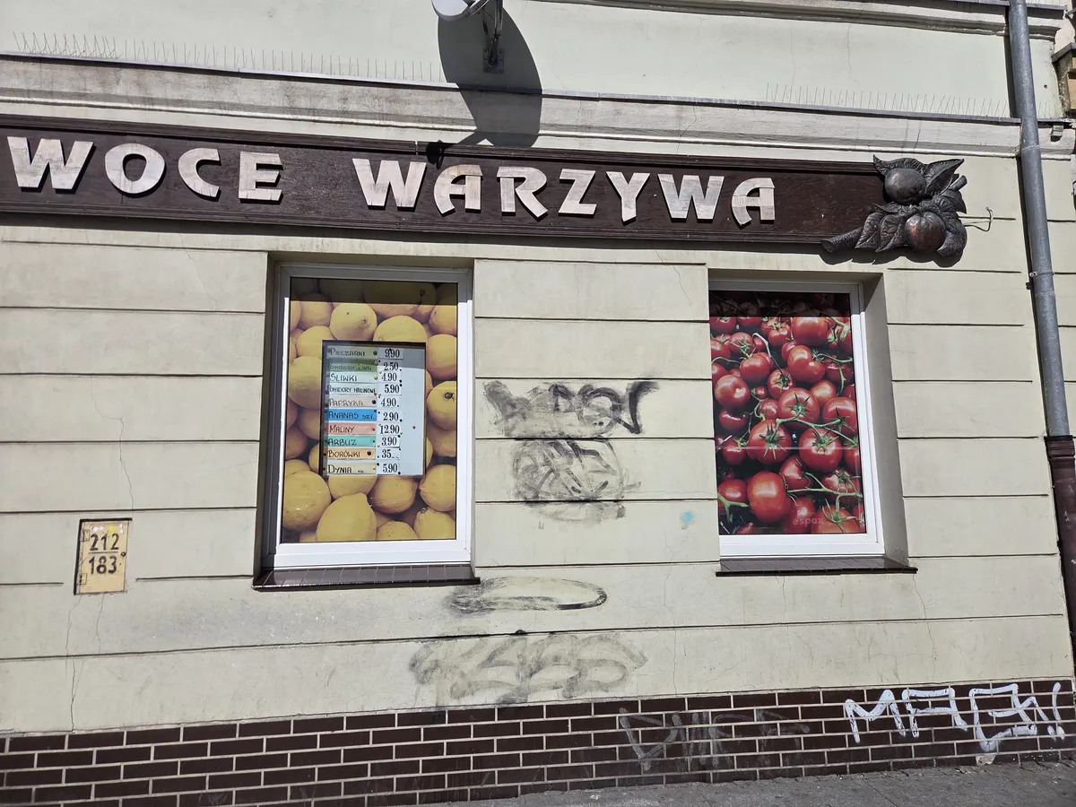 Dla osiedlowego warzywniaka przygotowaliśmy kompleksowe odświeżenie witryn i okien, które po latach wymagały nowej oprawy.