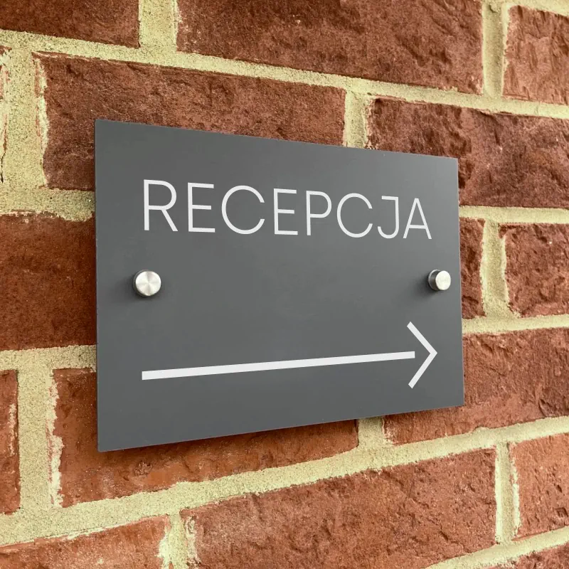 Dzięki temu nasze tabliczki informacyjne pełnią funkcję eleganckich szyldów, które pomagają interesantom dotrzeć do właściwej siedziby.